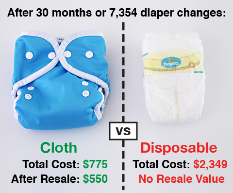 A set of cloth diapers along with the other necessity, such as wet bags and wipes, will cost a fraction of that at around $450, factor in the cost of laundry and you are still way ahead. If you really want to break down cost consider, multiply children in disposables verse multiply children re-using cloth diapers, your savings in now exponential.